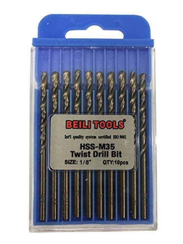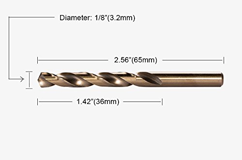 HSS M35 Cobalt Twist Drill Bits, Pack of 10 (3.2mm, 1/8")