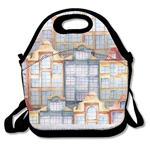 (IEIDJFF)/Accessories/Luggage, Bags Travel/DIRECT FROM USA/IEIDJFF Watercolor Buildings Lunch Bag Classic Generous For Mens