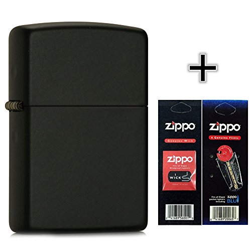 -. Title : Zippo Black Matte Lighter Value Pack (Lighter # 218 + Flint + Wick)
