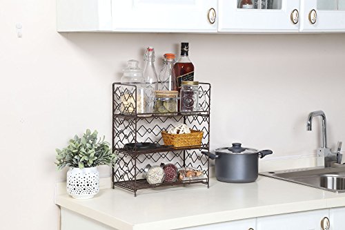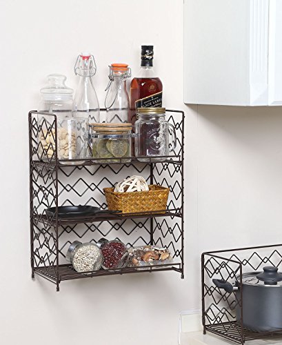 Wide Wall Mounted Spice Rack - Wire Kitchen Counter Storage Shelf Organizer (Espresso, 3 Tier)