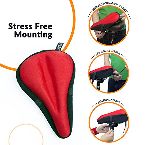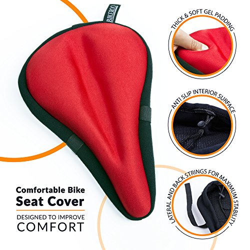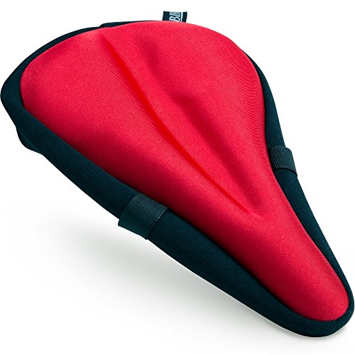 Most Comfortable Bike Seat Cushion Cover - Premium Quality Exercise Bicycle Saddle Pad With Soft Gel for Women and Men - Great for Indoor Cycling Class and Stationary Bikes (Red)