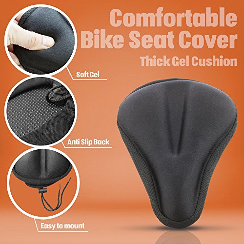 Most Comfortable Exercise Bike Seat Cushion Soft Gel Pad - Universal Bicycle Saddle Cover for Women and Men - For Indoor Cycling, Hybrid, Spinning, Stationary and Mountain Bikes