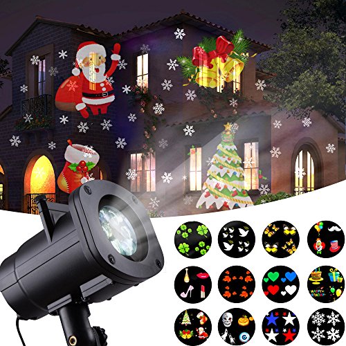 CHRISTMAS LIGHTS, HONGGE LED PROJECTOR LIGHT WITH 12 SWITCHABLE PATTERNS WATERPROOF SPOTLIGHT NIGHT LIGHT FOR CHRISTMAS, INDOOR AND OUTDOOR, HALLOWEEN, PARTY, BIRTHDAY, HOLIDAY, LANDSCAPE,DECORATIONS.