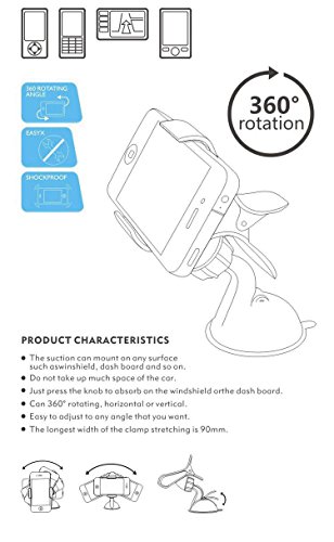 Features: -Fits many types of smartphone on market,which the diagonal screen size from 3.2"-6.0". -Adjustable clamp can hold up to 3.54 inches for width. -Shockproof design,providing a stable viewing environment and adjustable size secure from falling -Easy installation no need tools. Strong suction with Three layer,perfect to your car. -Full 360 degree rotation.you can adjust best position for your driving.