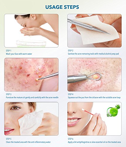 -. Feature : CLEAN AND DURABLE MATERIAL:those forBeauty blackhead remover tools are made of 100% professional stainless steel with lowest infection risk ,which are rust free and corrosion resistant,are suitable for all types of skin;please remember to sterilize them with rubbing alcohol both before and after use / MULTI-FUNCTIONAL DESIGN: effective tools design on different shape and loop size are suitable for removing different blackhead,acne,pimple,comedone,whitehead,zit and other various blemish,which are ideal tools for your smooth and beautiful face;ergonomic handle design are helpful to your accurate operation on the acne area to avoid skin damage / DETAILED USER MANUAL INCLUDED:our user manual are professional in detail,from which you can study how to use different kinds of tools correctly,you will know our products then love them;just please always remember to be gentle when using them / CONVENIENT PACKAGE DESIGN:elegant metal case design make sure forBeauty Comedone Extractor tools are portable to any place where you go;which is a wonderful gift for your families, friends and coworkers / CUSTOMERS SATISFACTION GUARANTEE: the whole forBeauty team are aiming at the highest customers satisfaction to our products quality and service,please do not hesitate to contact us for any of your concern,we are carrying out the most considerate solutions for the best customer experience;we are at your service