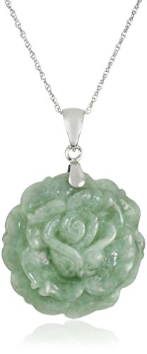Rhodium-Plated Sterling Silver Green Jade Rose-Shaped Pendant Necklace, 18"