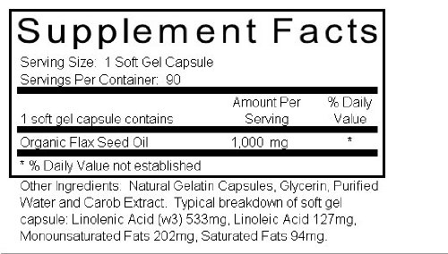 Flax Seed oil is derived from the seeds of the flax plant (Linum usitatissimum) and is known to be a source of the omega-3 fatty acid, alpha-linoleic acid (ALA). Omega-3 fatty acids are required for a variety of essential body functions, from proper blood flow to brain development. These long chain fatty acids are integral components of tissues and organ systems throughout the body, including the heart, skin, joints, eyes, and immune system. Research has shown flax seed oil helps support a normal inflammatory response and promotes cardiovascular and neurological wellness, as well as skin health. Each Flax Seed Oil soft gel includes 1,000 of organic flax seed oil, providing high-concentration ALA. Suggested Use: 1-2 soft gel capsules three times per day or as recommended by your health care professional.Feature
