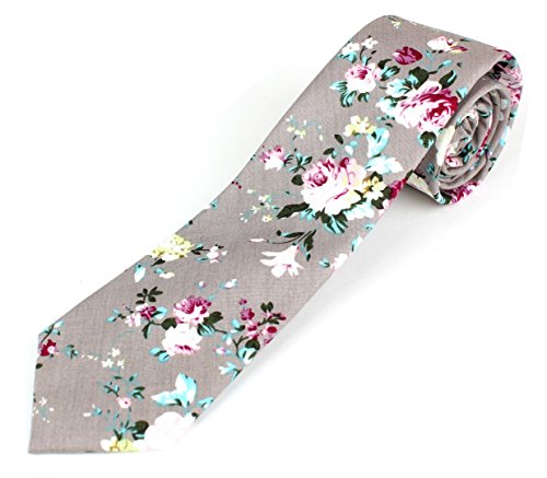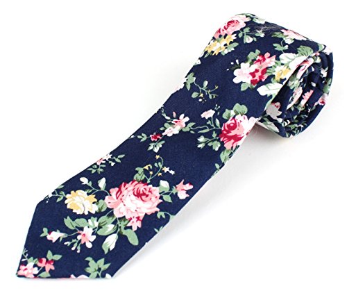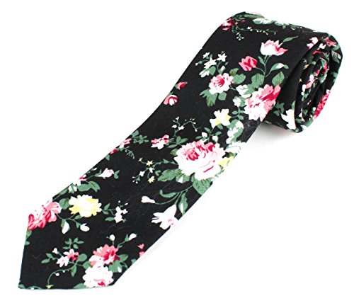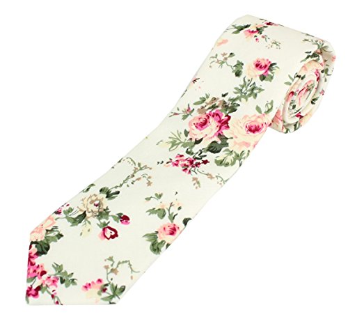 Men's Cotton Skinny Necktie Tie Bright Colorful Flower and Leaf Pattern - 2 1/2" Width