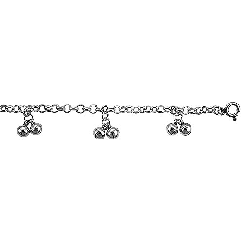 -. Title : Sterling Silver Anklet with Double Bells, fits 9 - 10 inch ankles
