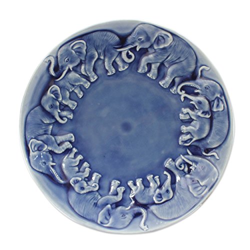 NOVICA "Blue Elephant Herd" Celadon Ceramic Plate