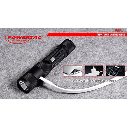 Powertac E5R 1000 Lumen E5 Rechargeable LED Flashlight with 3400mAh 18650, USB Type-C Charger