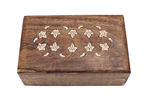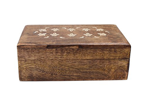 -. Title : Store Indya Handmade Wooden Keepsake Trinket Jewelry Box Storage Organizer with Floral White Inlay