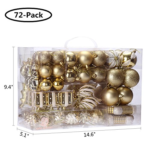 72-PACK CHRISTMAS ORNAMENTS - 72 pieces of Christmas ornaments in a variety of shapes and designs. Hand-held reusable plastic gift box included. Great as a perfect gift or just for self-use.