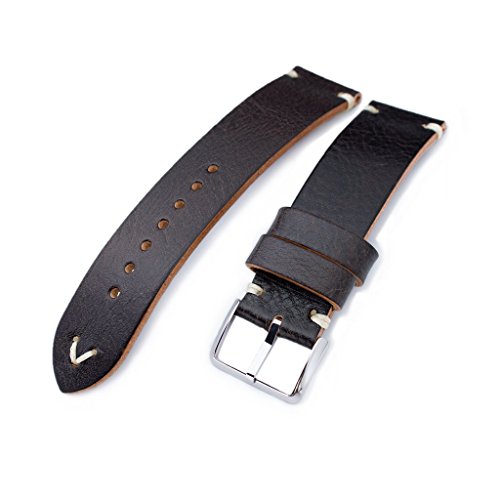 -. Title : 20mm MiLTAT Dark Brown Genuine Calf Leather Watch Strap, Beige Stitching, Polished Buckle