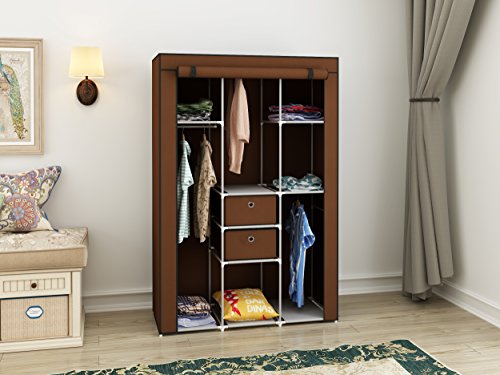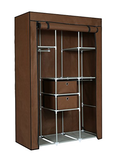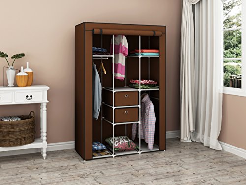 MULSH Closet Wardrobe Portable Clothes Storage Organizer with Metal Shelves and Dustproof Non-woven Fabric Cover in Brown,41.34X17.72X62.20 in(WxDxH)