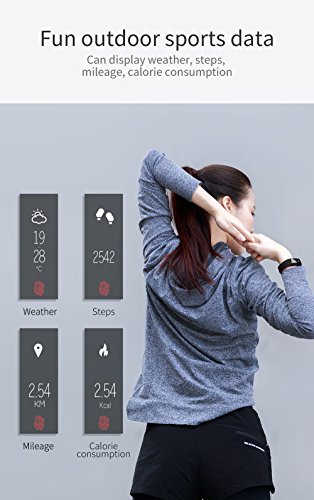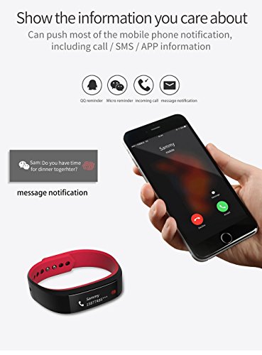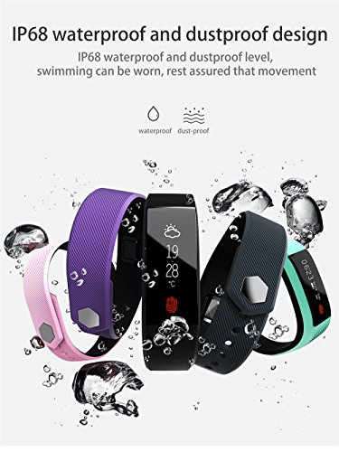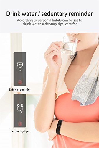 -. Feature : Sports Design:special design for sports,with heart rate monitor,pedometer,it can trc ack your steps and running data such as distance and calorie consumption. / Health management:with sleeping monitor,alarm clock,sedentary reminder,drinking reminder. / Useful Function:with call and app message reminder,remote camera,the bracelet can automatically light up the screen when you raise your hand to look. / Large screen display:with 0.91 inch large OLED screen display,one point touch. / Waterproof Bracelet:IP67 waterproof grade,never worry about water.