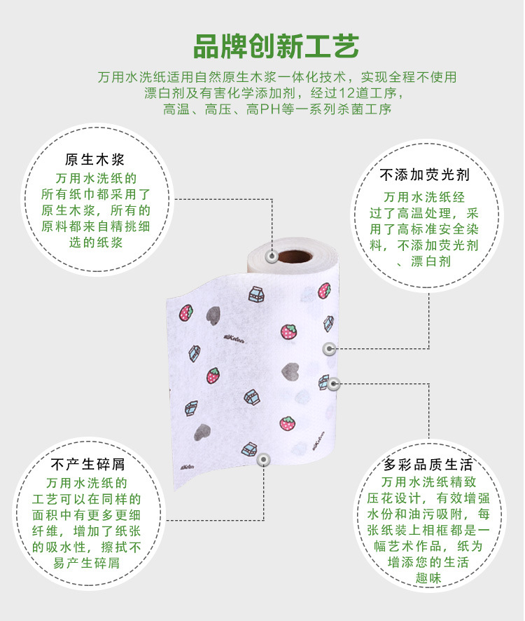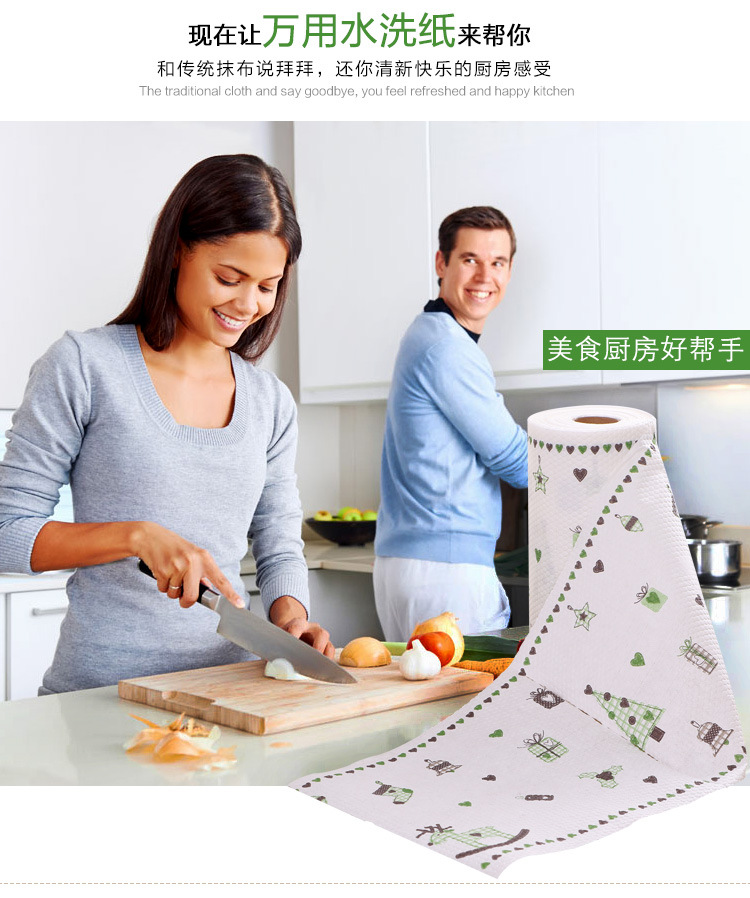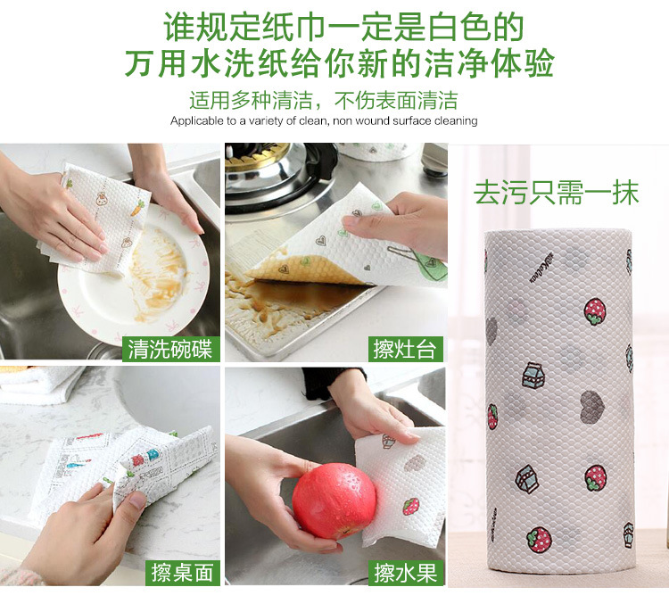 Printing Flower Kitchen Dishwashing Paper Towel Dishcloth, Washable, Water Absorbent Paper