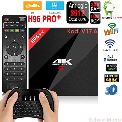 -. Title : [2018 New Version V17.6] Streaming Player H96 PRO+ Android 7.1 3GB+16GB TV BOX Amlogic S912 Octa Core CPU Bluetooth 4.1 Dual WiFi 2.4GHz/5.8GHz LAN 1000M H.265 4K Player + Mini Wireless Keyboard