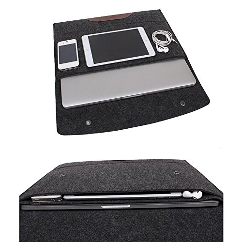 -. Feature : Fashion simple envelope concept and elegant Eco Felt appearance with PU leather trim gives you unexpected lightweight experience; / The snap fastener can open and close easily with the wear-resistant, waterproof, shockproof and breathable function, you could hold it under your arm or just placing inside another bag to carry; / On the front, there is a extra compartment, you could package the books, tablet, power bank, charger, ipad, cell phone or the headphones in it; / Great for travel and also suitable for your daily life, like school and work, which could be used as a document carrier too; / General stain just wipe gently with a wet cloth, it is very easy to clean.