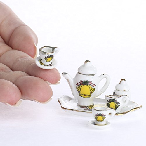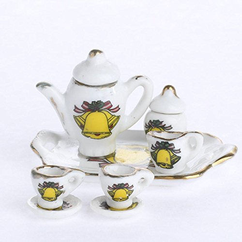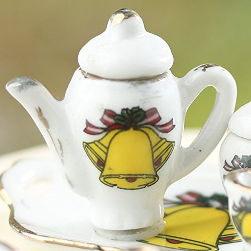 ()/Dolls/Accessories/DIRECT FROM USA/Miniature Christmas Holiday Bell Ceramic Dainty Tea Set for Collectors, Displays and Tiny Doll ...