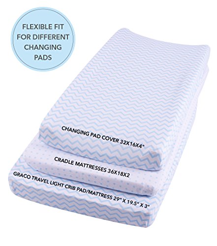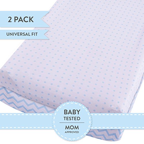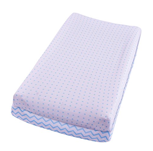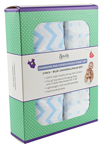 Changing Pad Cover Set , Cradle Sheet 2 Pack 100% Jersey Cotton for Baby Boy Blue Chevron and Polka Dots by Ely's & Co.