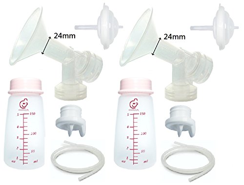 No need to collect breastpump parts piece by piece. This is all you need! This pump kit enclosed everything you need to get started to pump with Spectra S1, S2, and 9 Plus. It contains 2 collection bottles, 2 flanges (breastshields), 2 valves, 2 silicon diaphragms, 2 backflow protectors, and 2 tubes. We offer 5 flange sizes, 19mm, 21mm, 24mm, 27mm, 30mm. All parts can be sanitized with boiling water or water steam, and are made from BPA free materials. Bottle measurement is printed in color for easy reading. Breastshield is in one-piece (not insert). This pump kit can be used with hand free pumping bras. Packed in retail box, sealed by manufacturer for protection and hygiene. Comply with with FDA regulation 21 CFR 177.1520, 21 CFR 177.2600 and EU Commission Regulation (EU) No 10/2011 for plastic materials that intended to come into contact with food.Feature