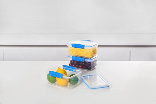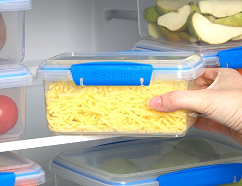 Sistema Fresh Collection Food Storage Containers, 33.8 Ounce/4.2 Cup, 3 Pack, Clear/Marine Blue