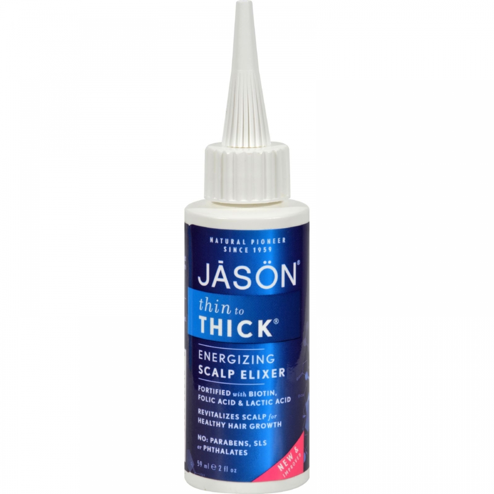 | Jason Thin To Thick Revitalizing Scalp Elixir Description: Hair and Scalp Therapy Biotin and Folic Acid, Polysorbates, and Active Vitamin C Complex This revitalizing, preventative and corrective elixir purifies, tones and invigorates the scalp. Helps free hair follicles of debris which inhibit hair growth. With Biotin, Folic Acid, and hydrolyzed proteins, it strengthens fine and limp hair. Disclaimer These statements have not been evaluated by the FDA. These products are not intended to diagnose, treat, cure, or prevent any disease. Ingredients : Hawaiian sea kelp/algae extract, purified spring water, plant phospholipids (panthenol-3), witch hazel extract, comfrey extract, glycerine, calendula extract, lactamide MEA, lecithin, hydrolyzed wheat protein, chamomile extract, polysiloxane copolymer, inositol, ethyl panthenol, folic acid, steardimonium panthenol, extract of burdock, polysorbate-20, polysorbate-60, dimethicone copolyol, dl-panthenol, salicylic acid, vitamin E, lactic acid, mixed fruit acids, cocodimonium hydroxypropyl hydrolyzed keratin, soy protein, zinc ascorbate, phyto complex of (nettle, garlic, and watercress, extract of ginseng, cysteine, liposomes, niacinamide, and glycans) benzophenone-3, titanium dioxide, hydroxethylcellulose, methylparaben, propylparaben, phenoxyethanol, essential oils, phyto-complex of (clove, mint, cedarwood, cypress, juniper, lavender, ivy, sage, and hops). Size : 2 FZ Pack of : 1 Product Selling Unit : each |