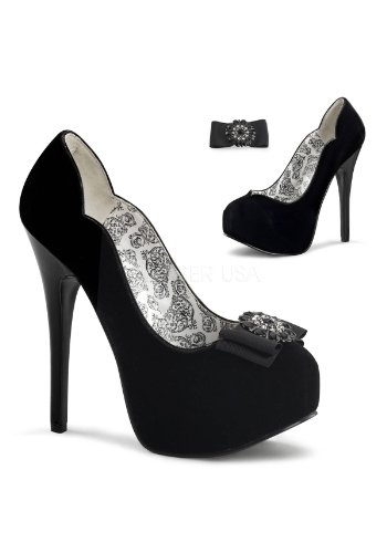 Studio : PleaserUSA Publisher : PleaserUSA Binding : Apparel Product Description Heel Height: Approx. 5 3/4' Tall. Stunning black velvet heels with sweetheart topline. The Jeweled rhinestone clip is fully removable. We love that this style is two looks in one. These closed toe pumps have a stiletto heel and concealed platform. Fabric/Synthetic Upper. 0