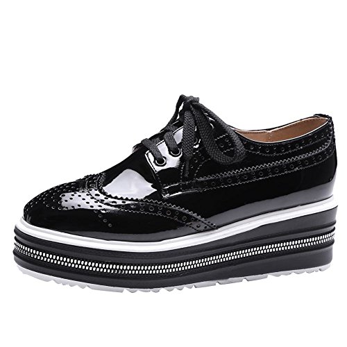 -. Binding : Apparel -. Brand : Carolbar -. Department : womens -. Feature : Manmade Material / Heel Height: 2" / Round Toe / Listing images were taken off actual product, however, actual color may differ slightly due to different monitor display setting. -. ProductGroup : Shoes -. ProductTypeName : SHOES -. Title : Carolbar Women's Lace-Up Patent Leather Platform Wedges Oxfords Shoes