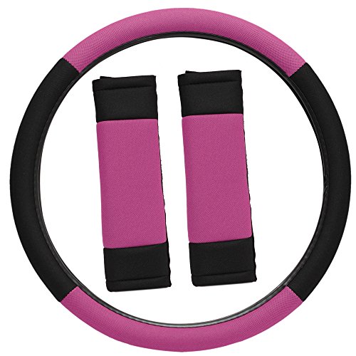 Both fit most models of Cars, Trucks, SUVs, and Vans. Steering wheel cover fits all standard models.