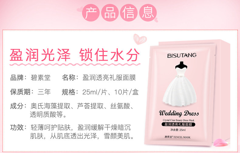 盈润透亮礼服面膜 补水保湿滋润面膜帖护肤化妆品10片正品