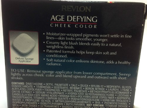 -. Feature : Revlon Age Defying Cheek Color Creamy Blush ( Peach ) Full Size. / Shade :Peach. / Full Size. ( 0.24 OZ/ 6.8 g) / CREAMY LIGHT BLUSH BLENDS EASILY TO A NATURAL,WEIGHTLESS FINISH.