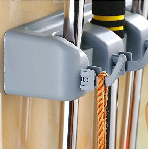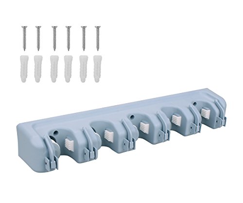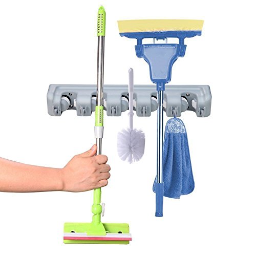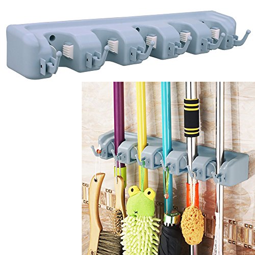-. Title : DayBuy Mop Broom Holder Wall Mount Commercial Rack Storage &Organization Hanger with 5 Position with 6 Hooks Champ Grip Holds up to 11 Tools for Kitchen Garden and Garage
