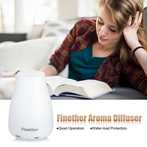 Finether 100ML Aroma Essential Oil Diffuser Ultrasonic Aromatherapy Purifier Humidifier Air Mist and 7 Color Changing LED Lights