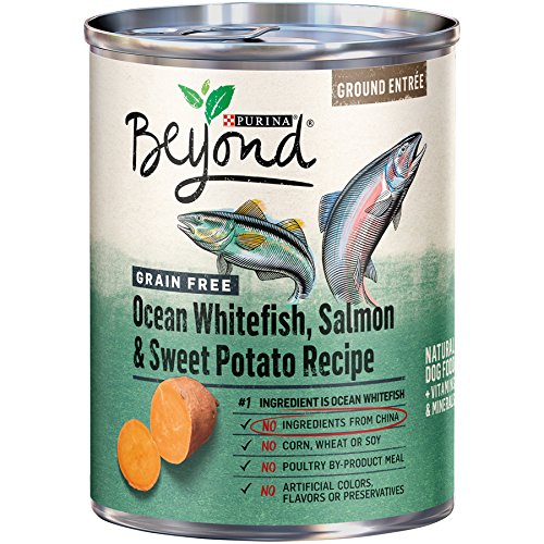 Incorporate wholesome, grain-free goodness into your dog's diet with Purina Beyond grain free Ocean whitefish, salmon & sweet potato recipe ground Entree adult wet dog food. Real salmon is the #1 ingredient, and Ocean whitefish with accents of nutritious vegetables like sweet potatoes Round out this recipe. Made with purposely selected, recognizable ingredients you know and Trust, These ingredients work together to deliver the natural nutrition and essential vitamins and minerals to help your canine pal live a full, healthy life. We formulate this recipe without artificial colors, flavors or preservatives, and no ingredients come from China, so he gets the nourishment he needs and nothing he doesn't. Rest easy knowing your faithful friend is getting his food from a company that believes there is more to natural dog food than just ingredients. Try Purina Beyond wet dog food today, and show your best friend just how much he means to you.Feature