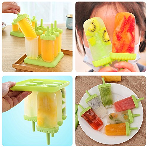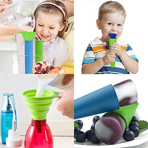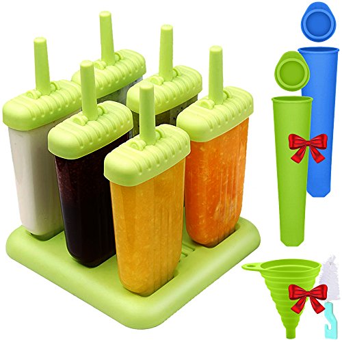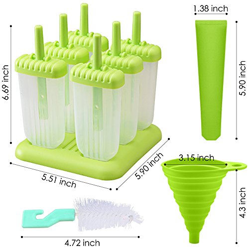 - PACKAGE INCLUDE: 1 * ice pop molds set (6 Pcs), 2 * silicon ice tube molds (Blue, Green), 1 * silicon foldable funnel, 1 * mini brush.