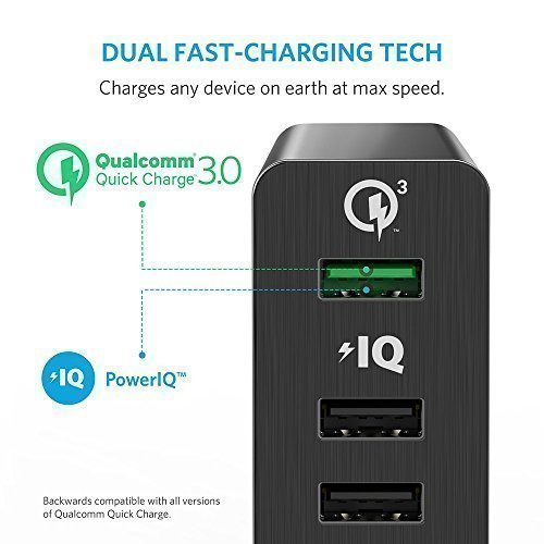 Anker's Fast-Charging Technology: Five ports equipped with Anker's exclusive PowerIQ and VoltageBoost technologies provide the fastest possible charge for non-Quick Charge devices, up to 2.4 amps per port.