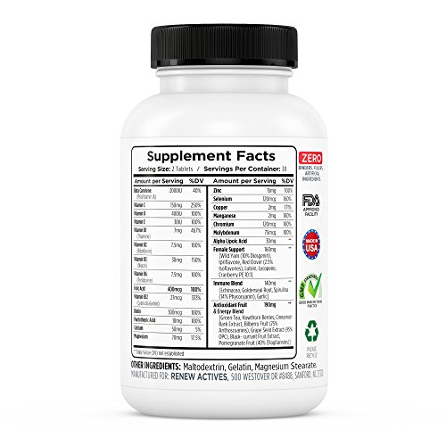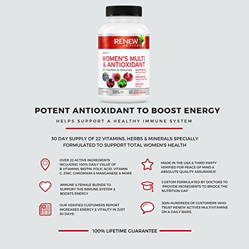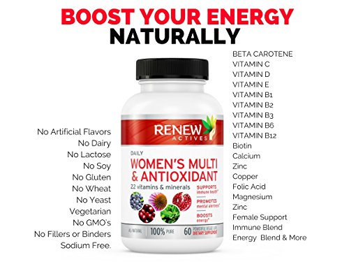 -. Feature : ENERGY BOOSTER: 22 Vitamins & Minerals to Support Female Health / IMMUNE SUPPORT: An Excellent Source of B, C, D Zinc, Biotin & Antioxidants / ANTIOXIDANT: Total Women Health Formulation to Boost Energy & Alertness / PURITY: No Iron, High Fructose Corn Syrup, Synthetic Colors or Sweeteners / TRUSTED: Every Batch is Tested for Potency by an Independent Third-Party Lab