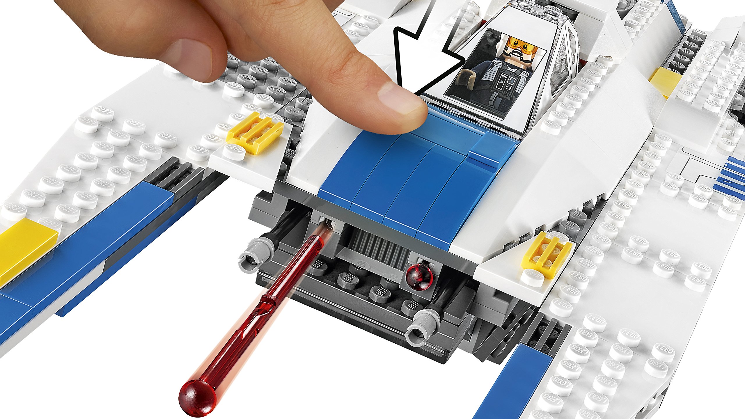 Let's open the cockpit and place the U wing pilot in the cockpit.