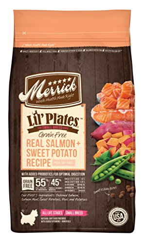 -. Binding : Misc. -. Brand : Merrick -. Label : Merrick Pet Care -. Manufacturer : Merrick Pet Care -. Model : 295108 -. MPN : 295108 -. PackageQuantity : 1 -. PartNumber : 295108 -. ProductGroup : Pet Products -. ProductTypeName : PET_SUPPLIES -. Publisher : Merrick Pet Care -. Studio : Merrick Pet Care -. Title : Merrick Grain Free Small Breed Recipe Pet Food, 4-Pound
