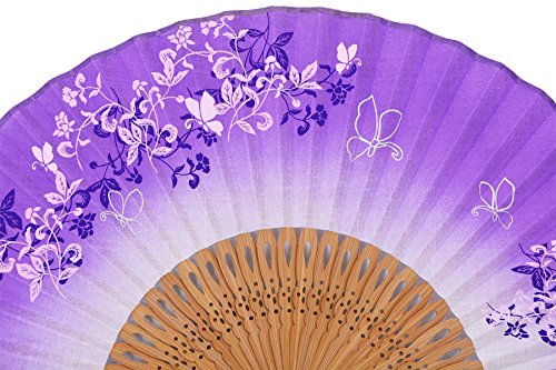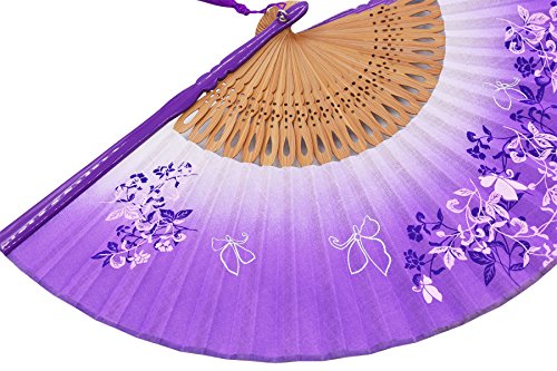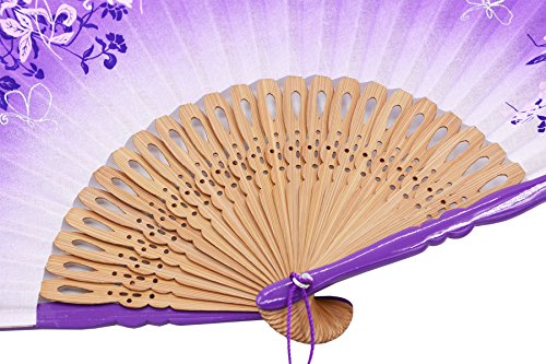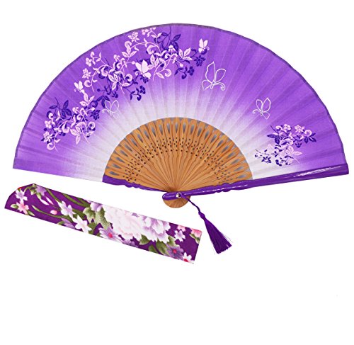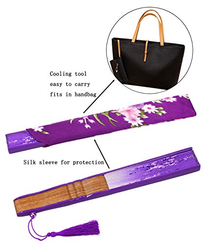 STHUAHE 8.27"(21cm) Woman Silk Folding Fans With a Fabric Sleeve for Protection, Chinese/Japanese Vintage Retro Style Hollow Carved Printing Gift Fans Wedding Fan Dance Fan Princess Fan (Purple)