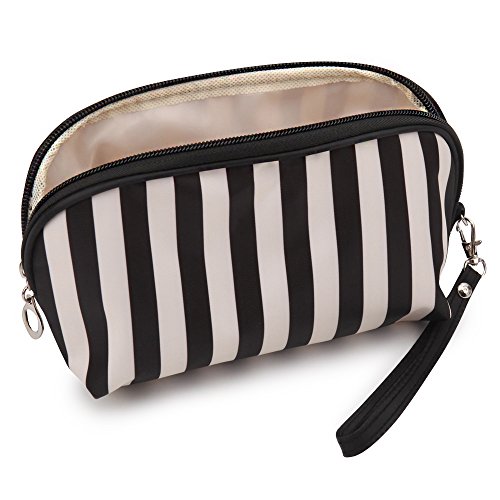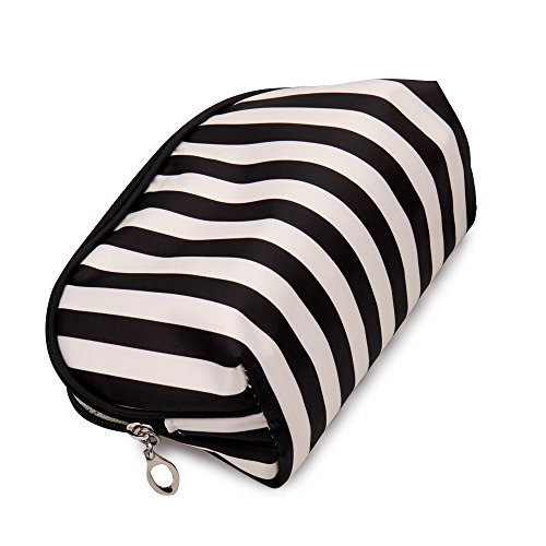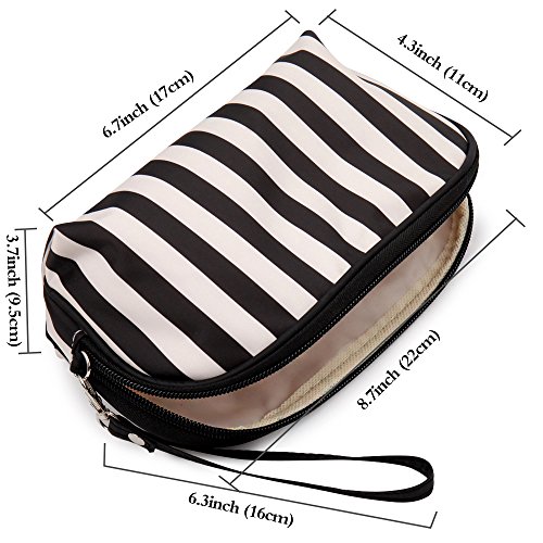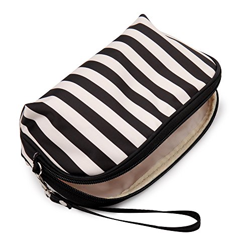 MLIIZYKKI Makeup Bag For Women Stripe Zipper Waterproof Cosmetic Pouch Wash Storage Toiletry Travel Accessories Organizer (Black)