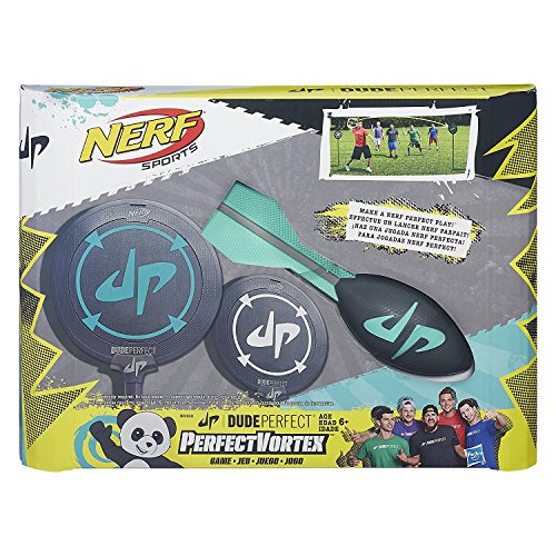 Studio : Nerf Sports Publisher : Nerf Sports Binding : Toy Product Description Make a Nerf Perfect play with the Dude Perfect PerfectVortex Game from Nerf Sports! Smash the Vortex football through the target to score points! The targets have removable centers that pop out when hit, so take aim and throw a knock-out shot. Get together with friends to play a game or try challenging shots. The instructions include game starters and trick shot ideas. Go big with the PerfectVortex Game, which combines the adrenaline rush of Nerf Sports with the exhilarating fun of Dude Perfect! Copyright Dude Perfect, LLC. Dude Perfect and the stylized DP logo are trademarks of Dude Perfect, LLC. Nerf and all related properties are trademarks of Hasbro. 0