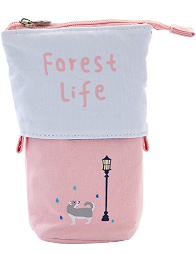 -. Title : iSuperb Canvas Creative Cartoon Telescopic Stationery Stand Up Pencil Case Cute Pouch Pen Case Desk Pencil Holder Cosmetic Makeup Organizer Bag Forest Series with Zipper Closure