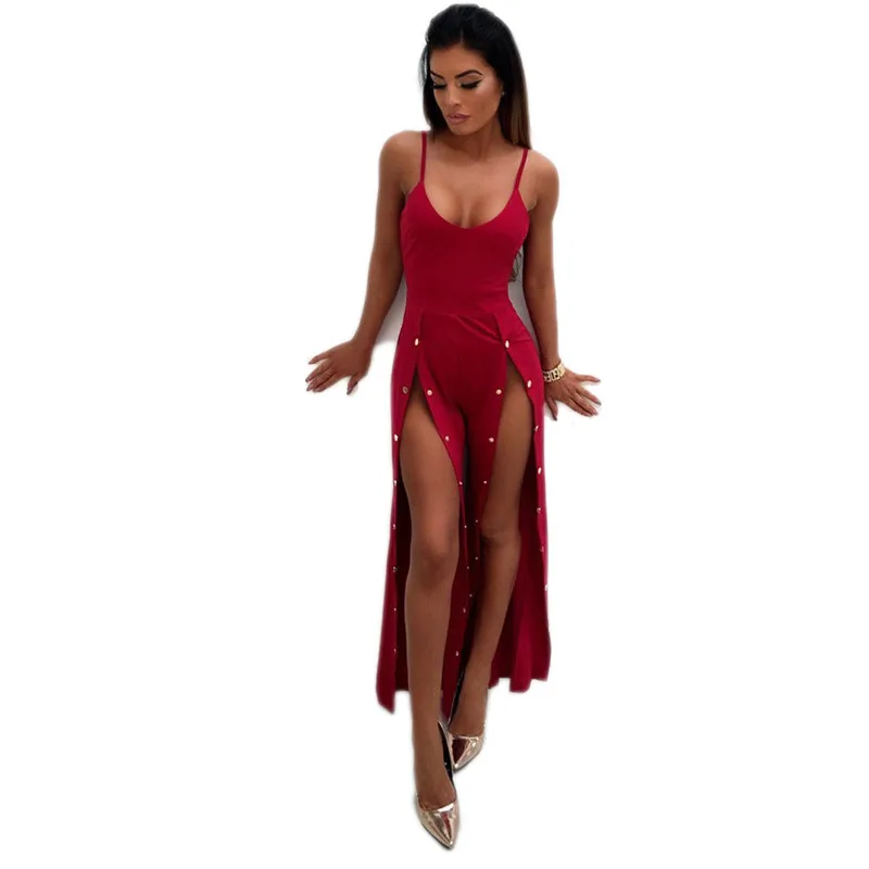 Model Number:sleeveless button wide leg jumpsuits