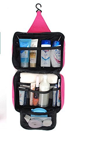 E-Bro® Portable Multi-Functional Waterproof Travel Toiletry Wash Cosmetic Bag Makeup Storage Case Hanging Grooming Storage Bags (Rose red)