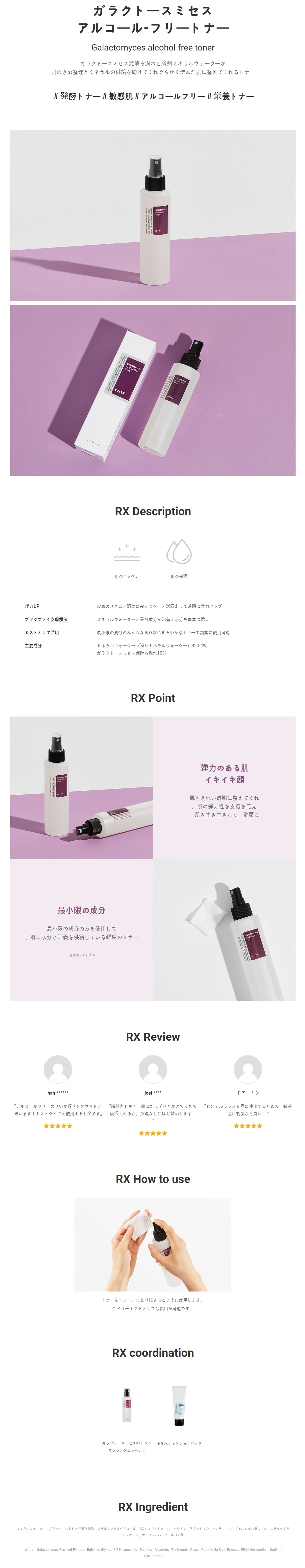 Galactomyces Alcohol-free Toner is made up of fermented compoent with a structure similar to skin,helping with calming, exfoliating, and nourishing the skin.