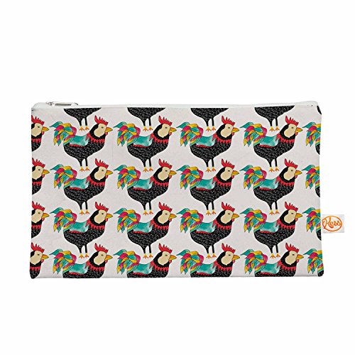 KESS InHouse Pom Graphic Design "The Rooster Squad" Black Pattern Everything Bag, 8.4" x 4" (PG1104AEP03)