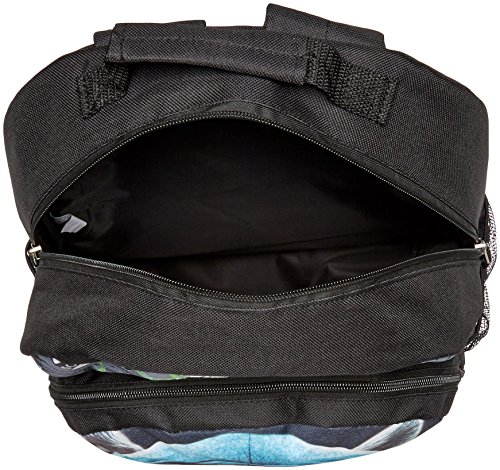 -. Feature : Backpack with hoodie-clad raccoon graphic featuring mesh side pockets and adjustable shoulder straps